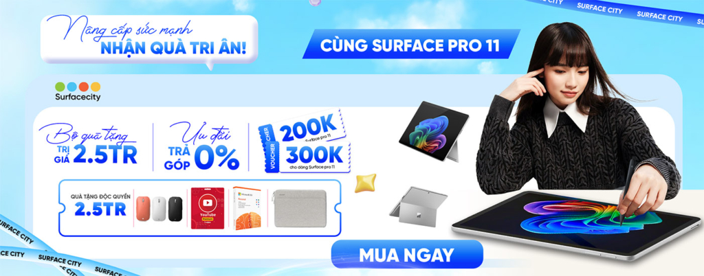 SURFACECITY chuyên phân phối Laptop Surface cũ, mới và phụ kiện Microsoft chính hãng. Mỗi sản phẩm đều được chọn lọc kỹ càng, kiểm tra nghiêm ngặt trước khi đến tay khách hàng. Chúng tôi cam kết chất lượng vượt trội, bảo hành dài lâu, mang đến sự an tâm và hài lòng tối đa.