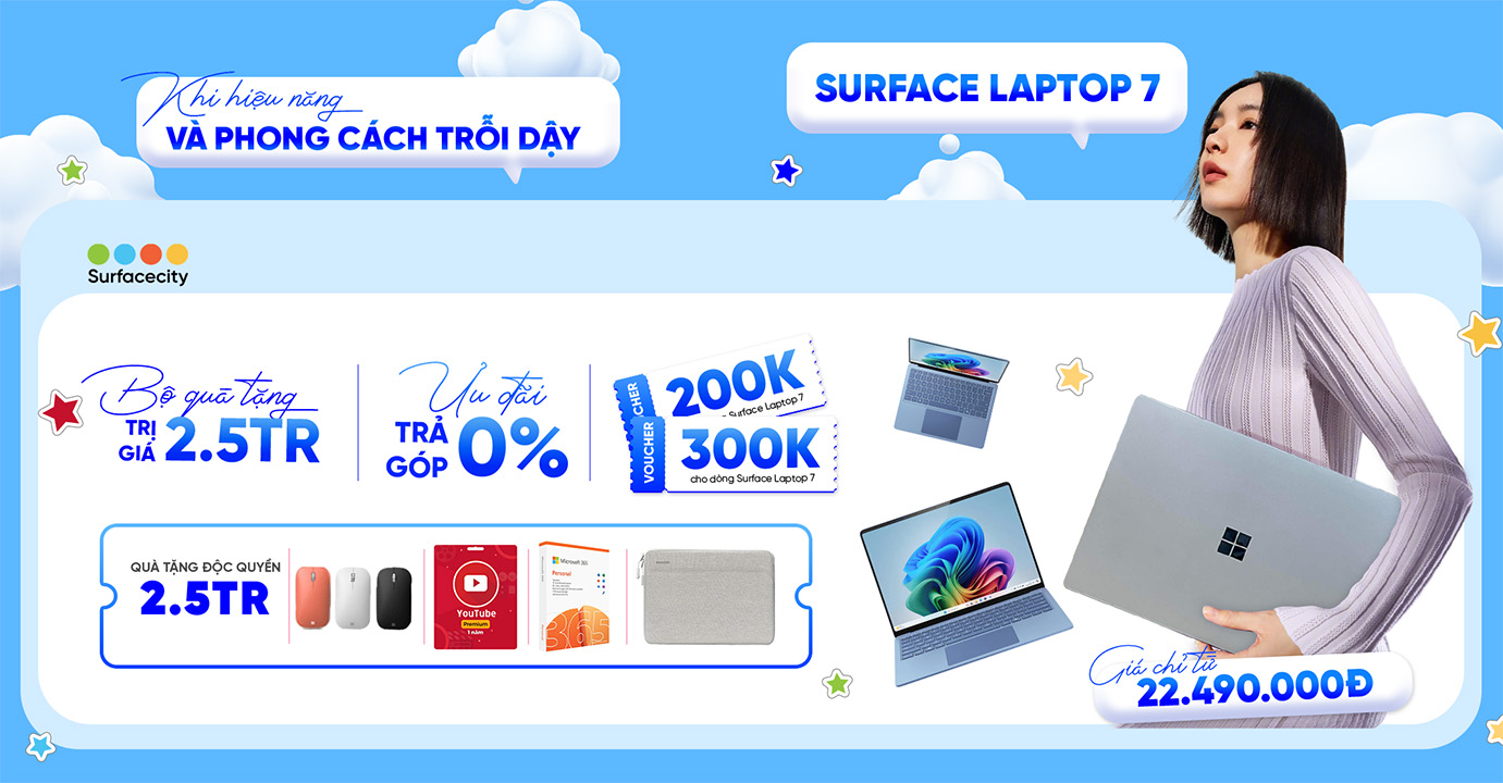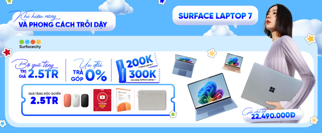 SURFACECITY chuyên phân phối Laptop Surface cũ, mới và phụ kiện Microsoft chính hãng. Mỗi sản phẩm đều được chọn lọc kỹ càng, kiểm tra nghiêm ngặt trước khi đến tay khách hàng. Chúng tôi cam kết chất lượng vượt trội, bảo hành dài lâu, mang đến sự an tâm và hài lòng tối đa.